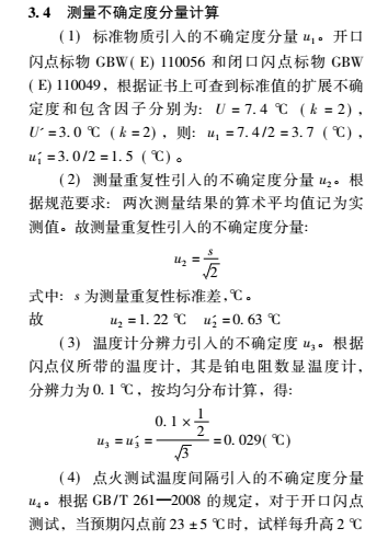 通過評(píng)定可得,開口 / 閉口閃點(diǎn)測定儀的不確定度主要來源于標(biāo)準(zhǔn)物質(zhì)、重復(fù)性測量及點(diǎn)火測溫間隔引入的不確定度,溫度計(jì)顯示和大氣壓修正引入的標(biāo)準(zhǔn)不確定度較小。